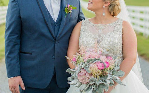 Our bride Ashley created this beautiful bouquet and boutonniere!